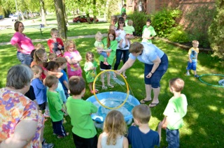 Storytime at the Library – Bubbles Posted on July 9, 2014December 17, 2018 by lakotalibrary We started our Summer Storytimes off with a bang with our Bubble themed program. Everyone loved all the bubbles!! A special “Thank You” to Mary Kay Schuh who brought her special bubble mixture and made giant bubbles that fit around the kids. Share: Click to email a link to a friend (Opens in new window) Email TweetLike Loading... Related