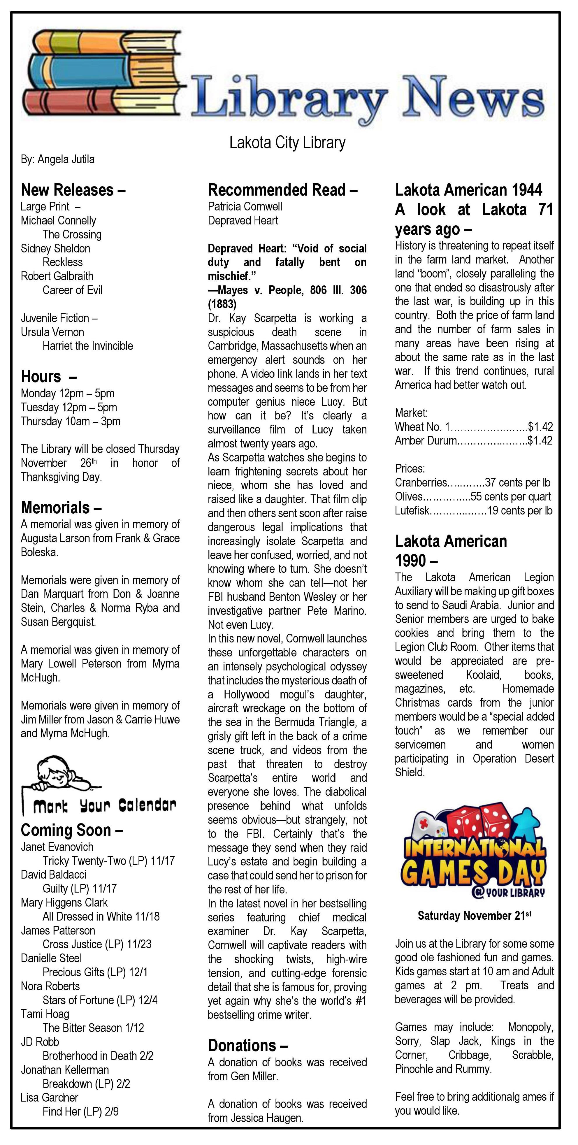 Newspaper Article – 11.16.15 Posted on November 16, 2015November 12, 2015 by lakotalibrary Share: Click to email a link to a friend (Opens in new window) Email TweetLike Loading... Related