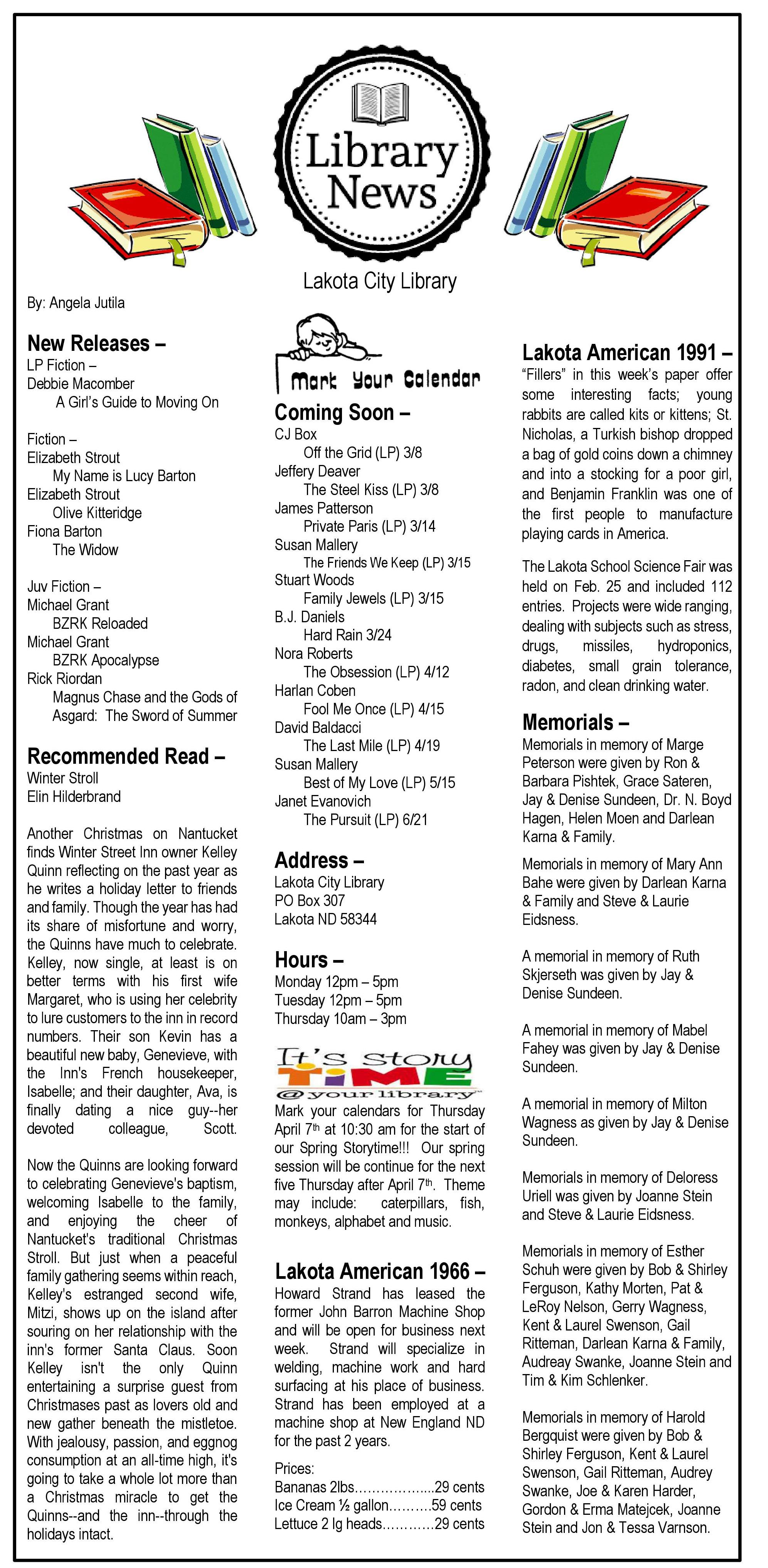 Newspaper Article 2.29.16 Posted on March 1, 2016February 29, 2016 by lakotalibrary Share: Click to email a link to a friend (Opens in new window) Email TweetLike Loading... Related