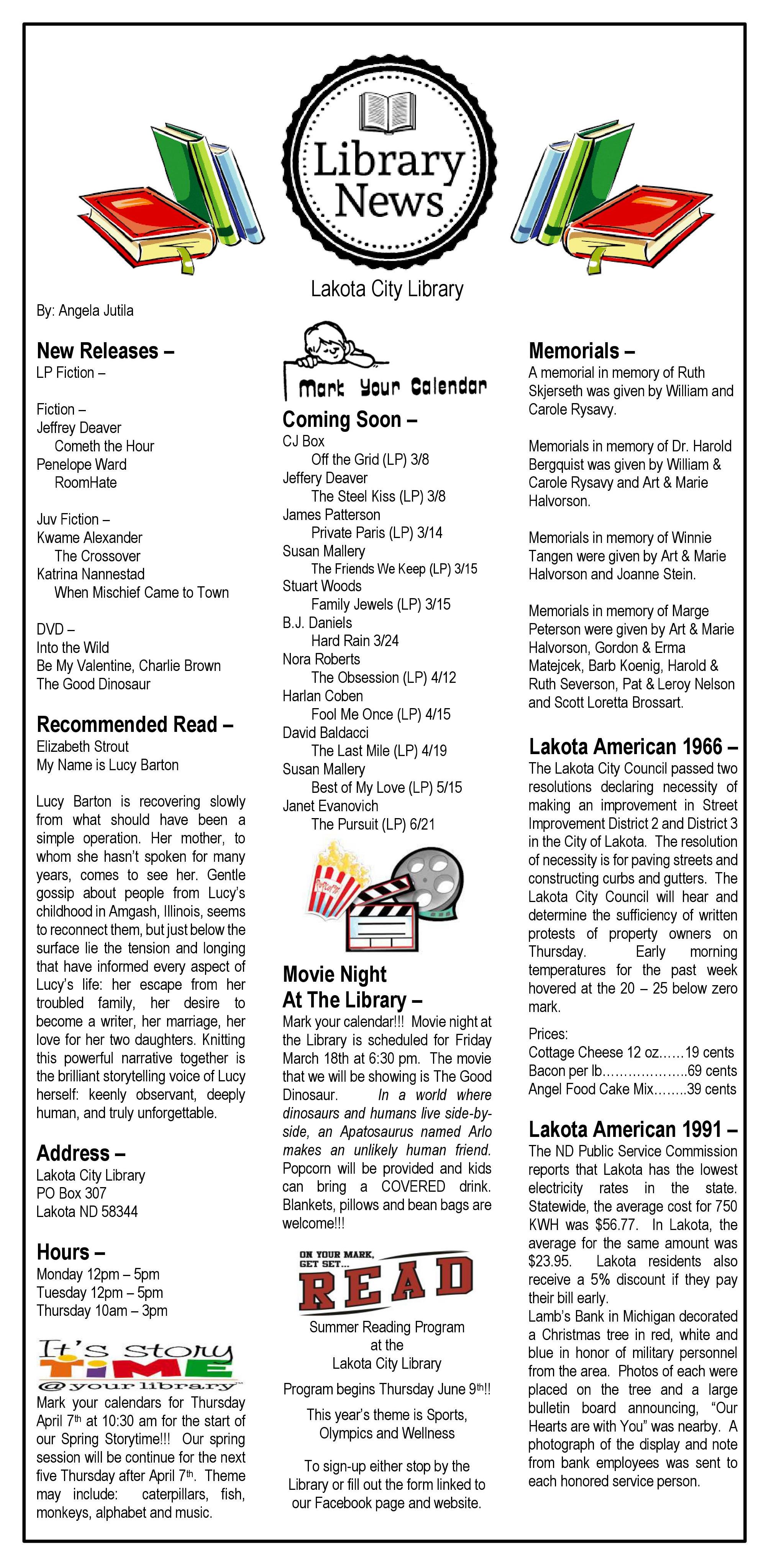 Newspaper Article 3.8.16 Posted on March 8, 2016February 29, 2016 by lakotalibrary Share: Click to email a link to a friend (Opens in new window) Email TweetLike Loading... Related