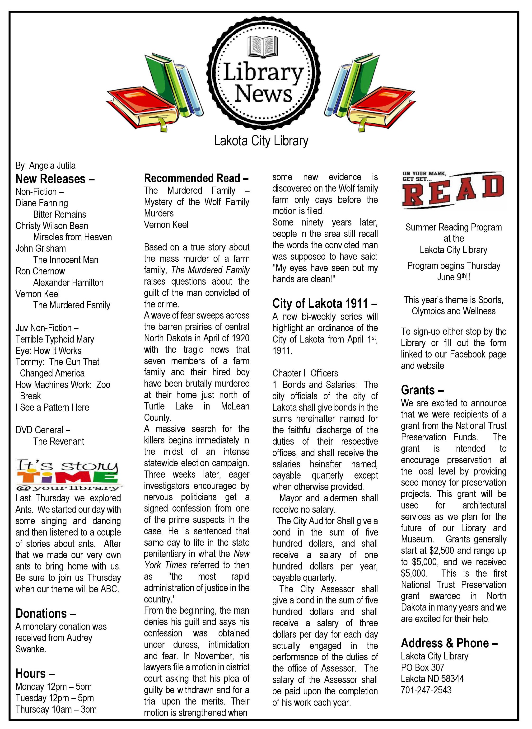 Newspaper Article 4.28.16 Posted on April 28, 2016 by lakotalibrary Share: Click to email a link to a friend (Opens in new window) Email TweetLike Loading... Related