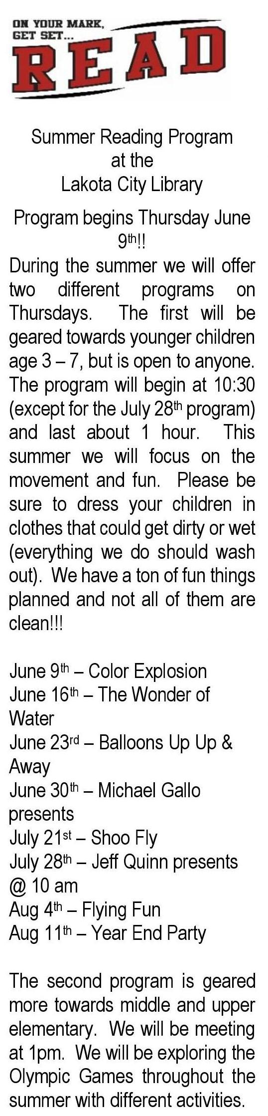 Summer Reading Program Posted on May 10, 2016 by lakotalibrary Share: Click to email a link to a friend (Opens in new window) Email TweetLike Loading... Related
