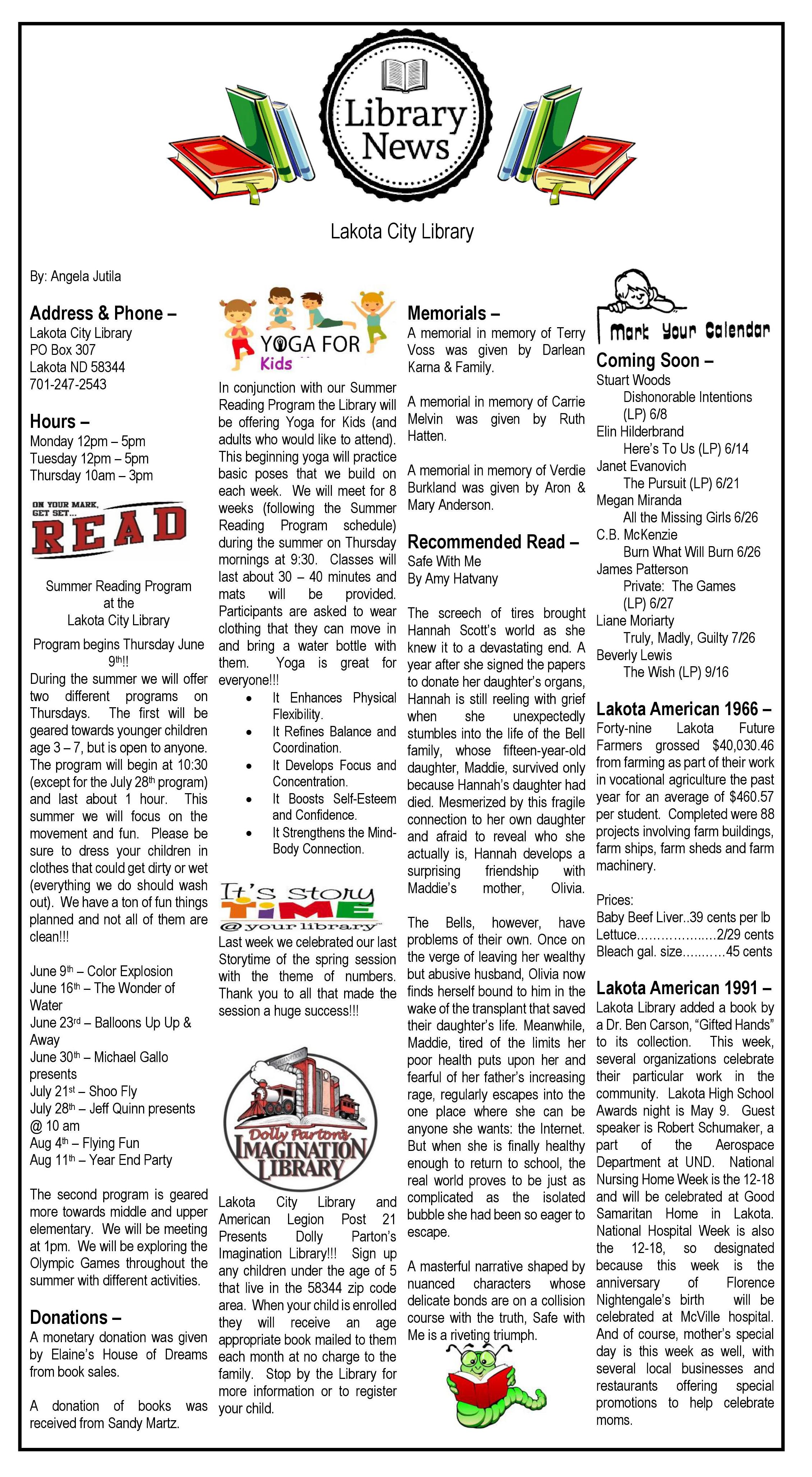 Newspaper Article 5.19.16 Posted on May 19, 2016May 10, 2016 by lakotalibrary Share: Click to email a link to a friend (Opens in new window) Email TweetLike Loading... Related