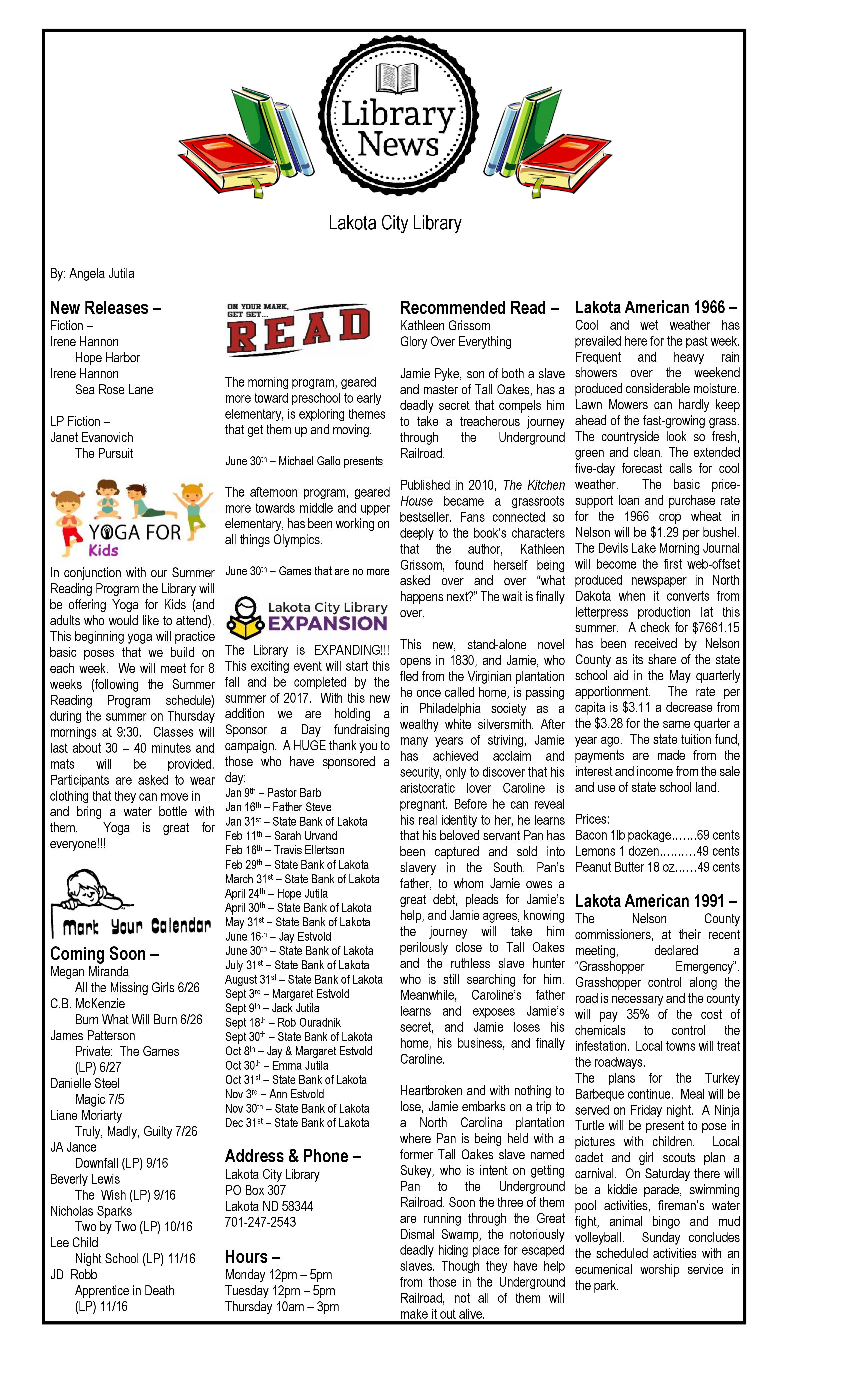 Newspaper Article 6.30.16 Posted on June 30, 2016June 21, 2016 by lakotalibrary Share: Click to email a link to a friend (Opens in new window) Email TweetLike Loading... Related