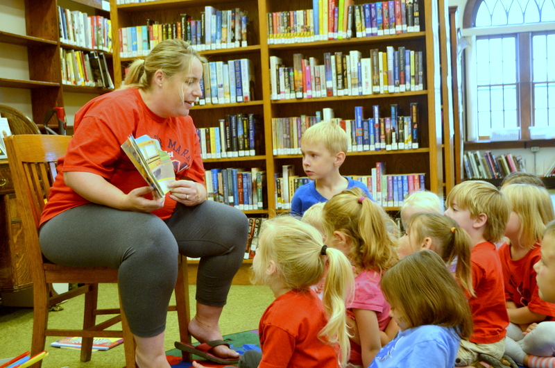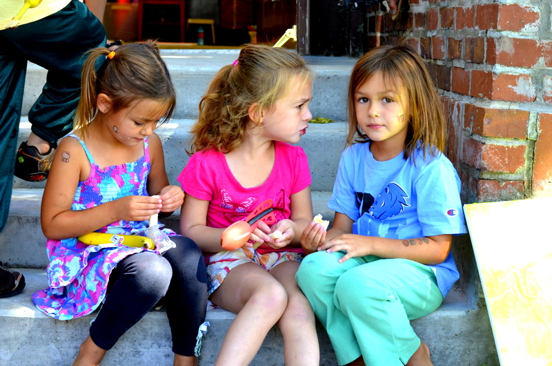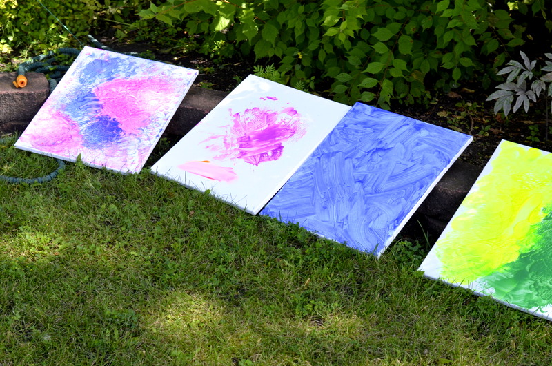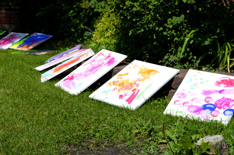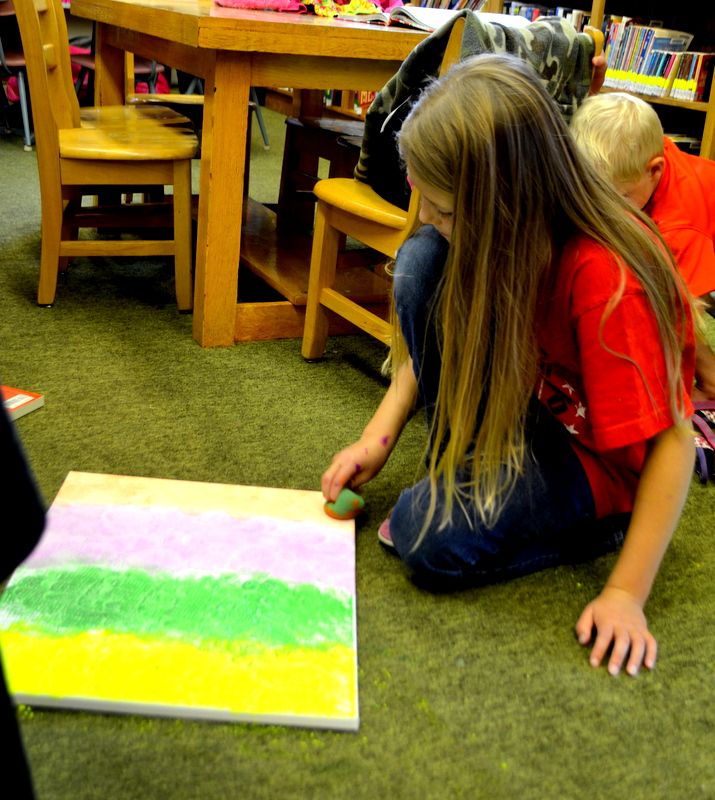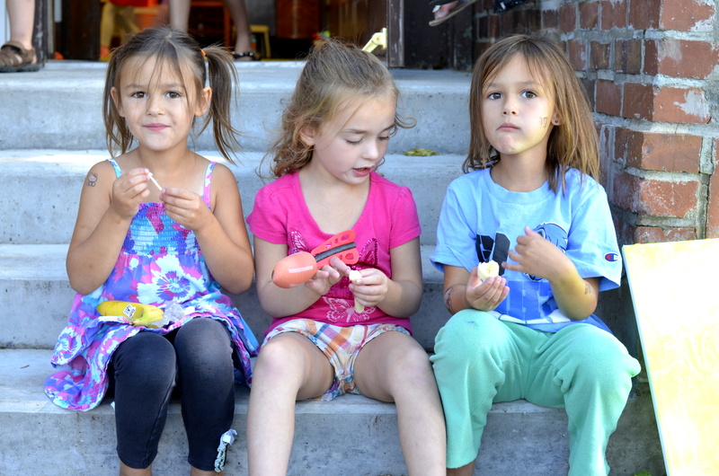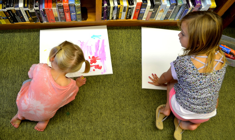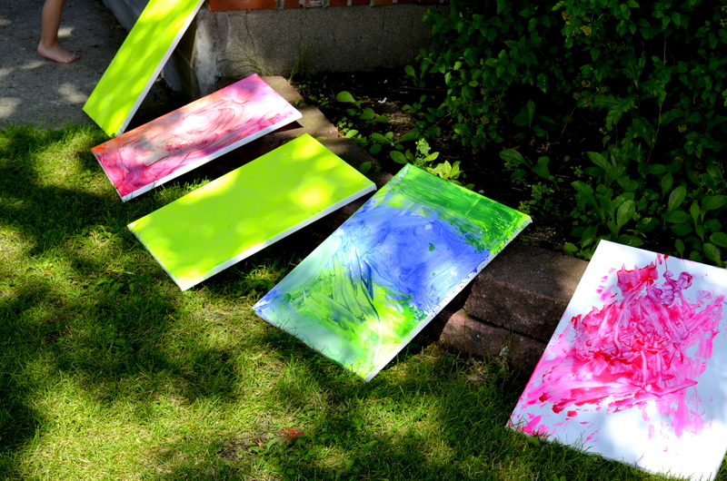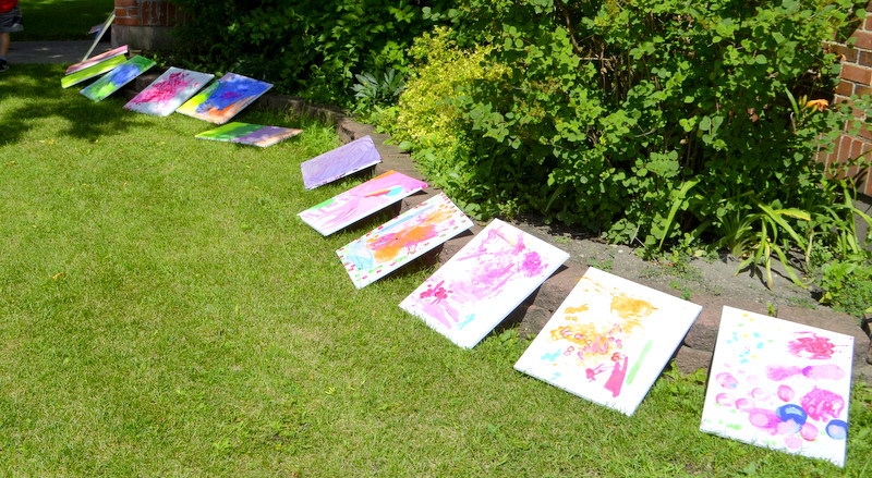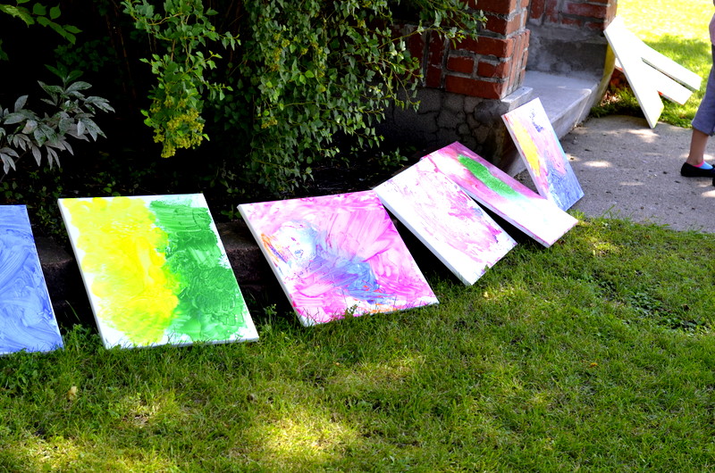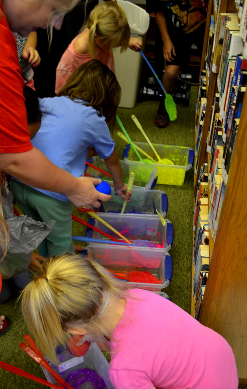 On August 4th we enjoyed the theme of Flying. The weather was pretty cool and damp so we held our activities inside. After a few stories the kids flew rockets threw some hoops to win sundaes and then it was time for the main event. The kids painted canvases with fly swatters!!! They had a ton of fun and didn’t make near the mess I thought they would.