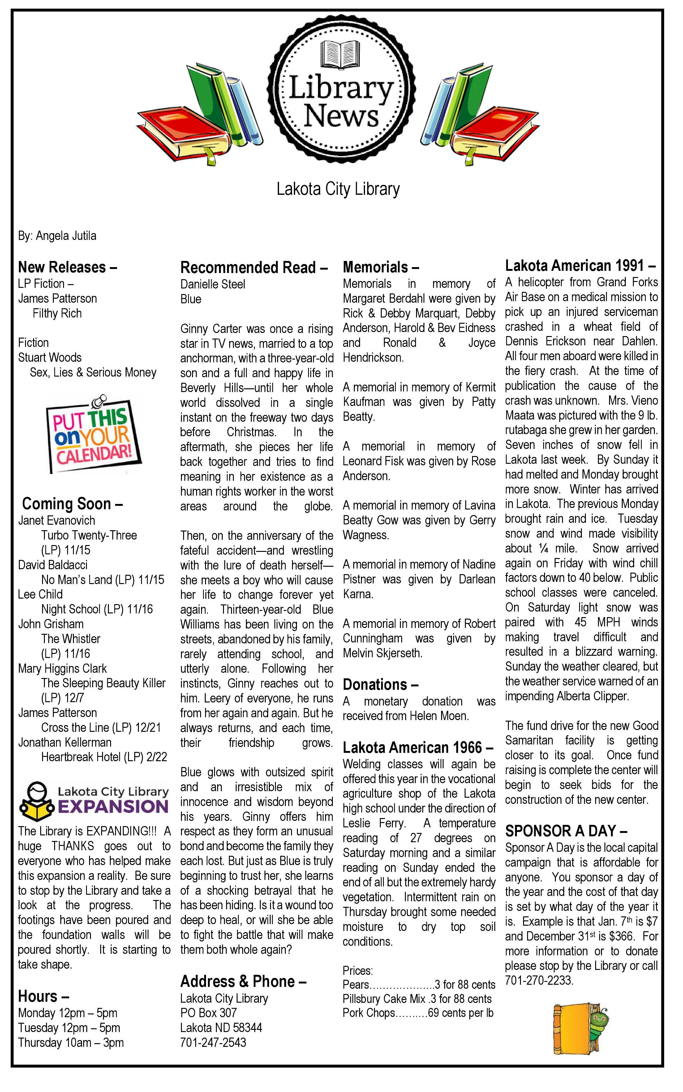 Newspaper Article 11.3.16 Posted on November 10, 2016 by lakotalibrary Share: Click to email a link to a friend (Opens in new window) Email TweetLike Loading... Related