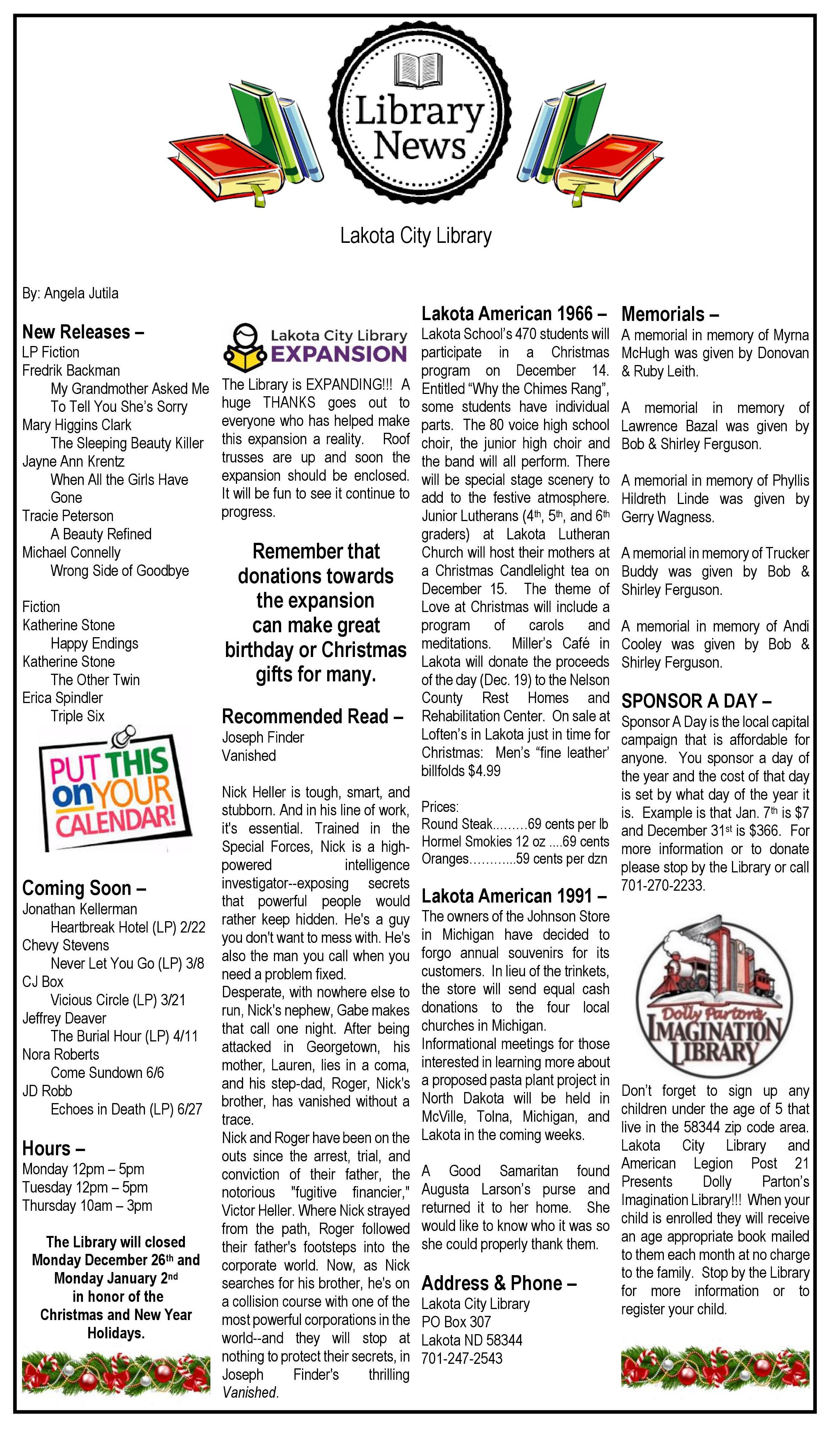 Newspaper Article 12.15.16 Posted on December 15, 2016December 12, 2016 by lakotalibrary Share: Click to email a link to a friend (Opens in new window) Email TweetLike Loading... Related