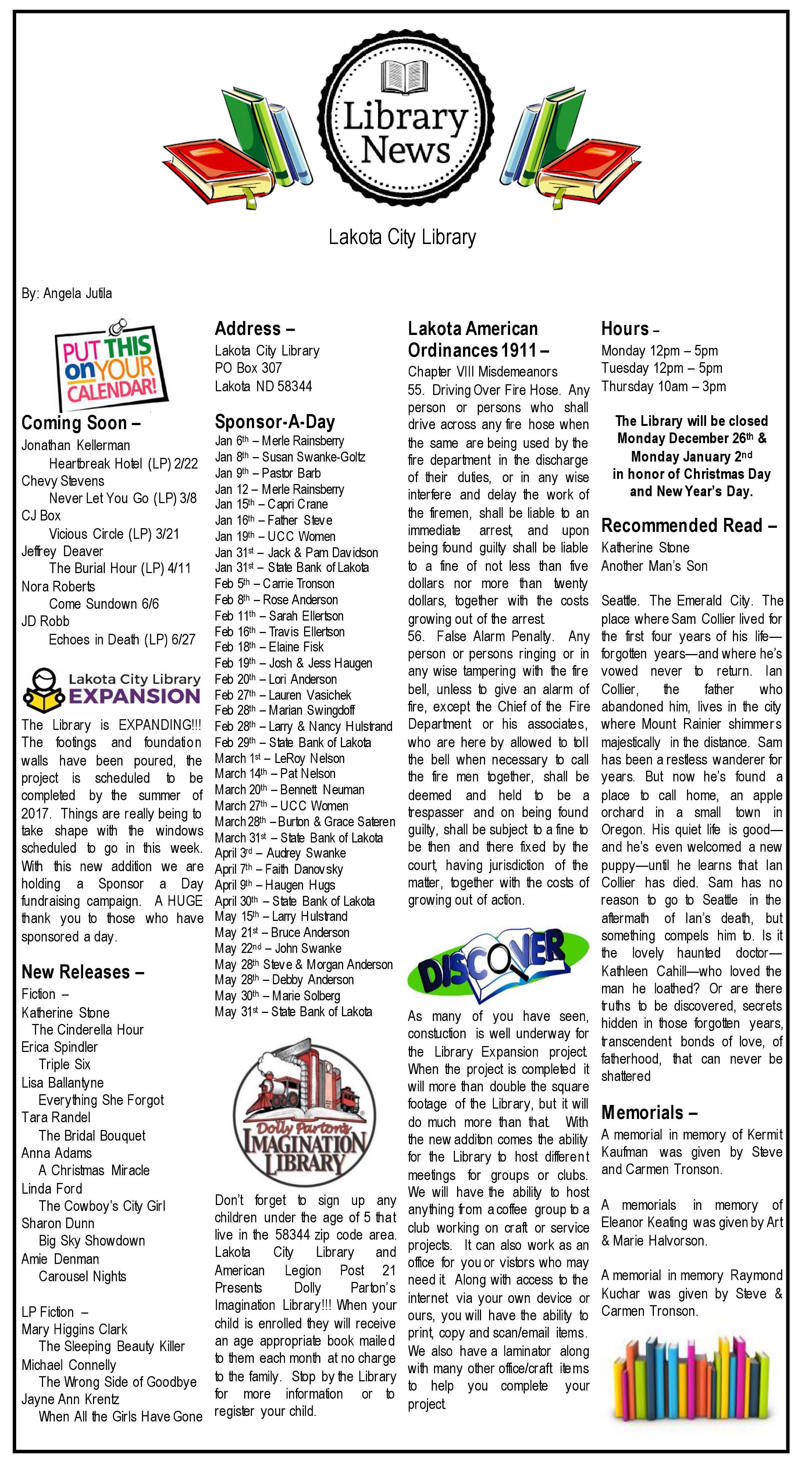 Newspaper Article 12.22.16 Posted on December 23, 2016 by lakotalibrary Share: Click to email a link to a friend (Opens in new window) Email TweetLike Loading... Related