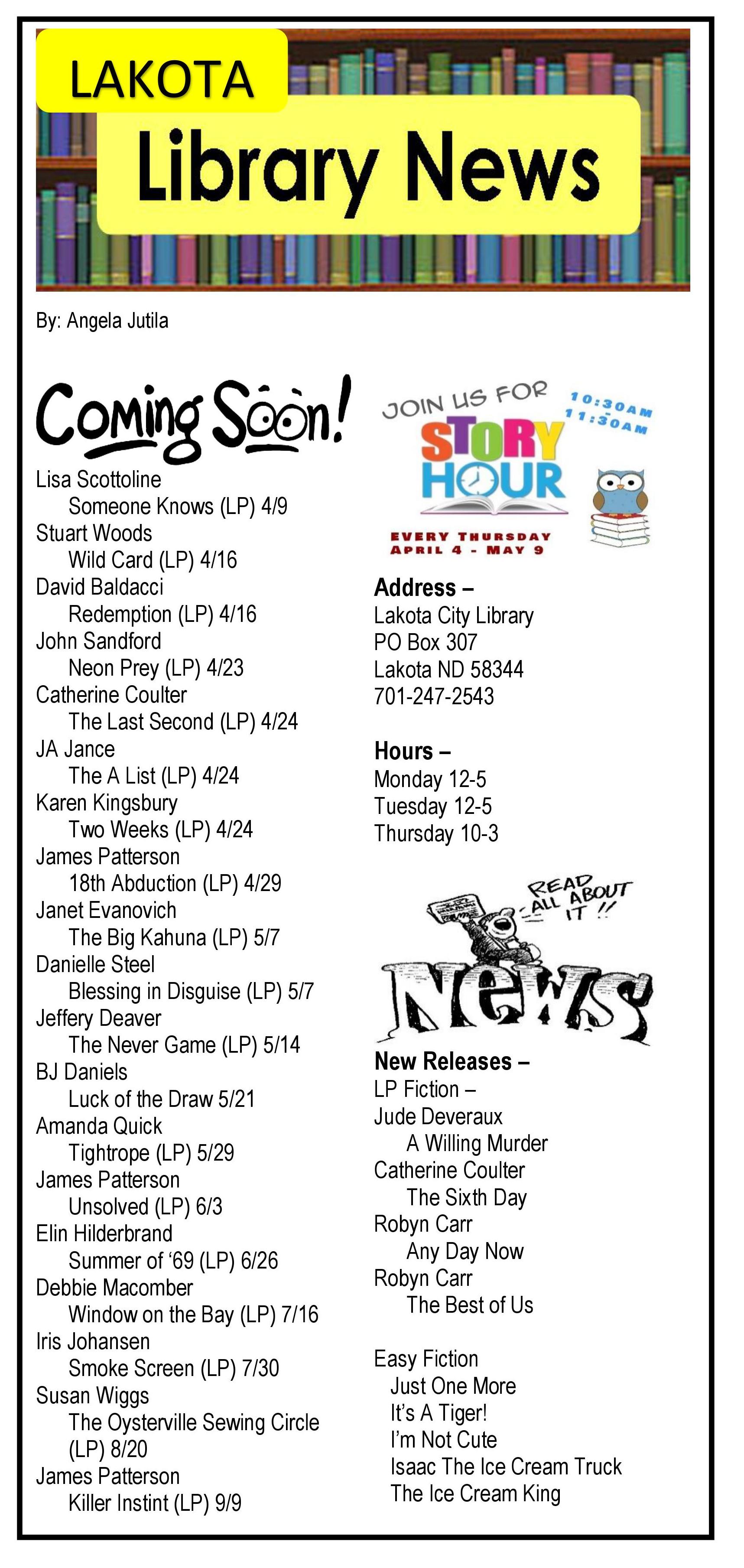Newspaper Article 4.11.19 Posted on April 11, 2019April 4, 2019 by lakotalibrary Share: Click to email a link to a friend (Opens in new window) Email TweetLike Loading... Related
