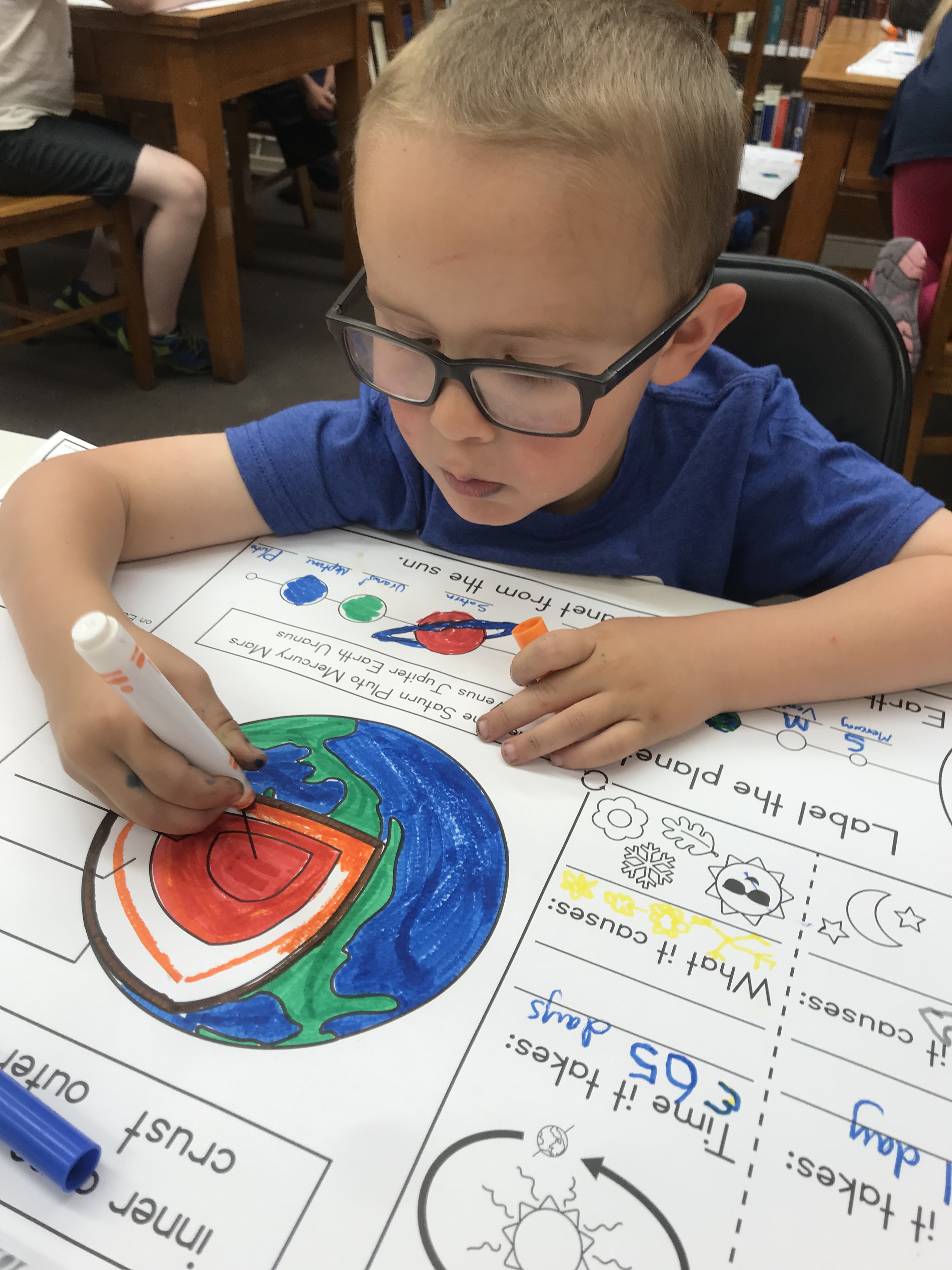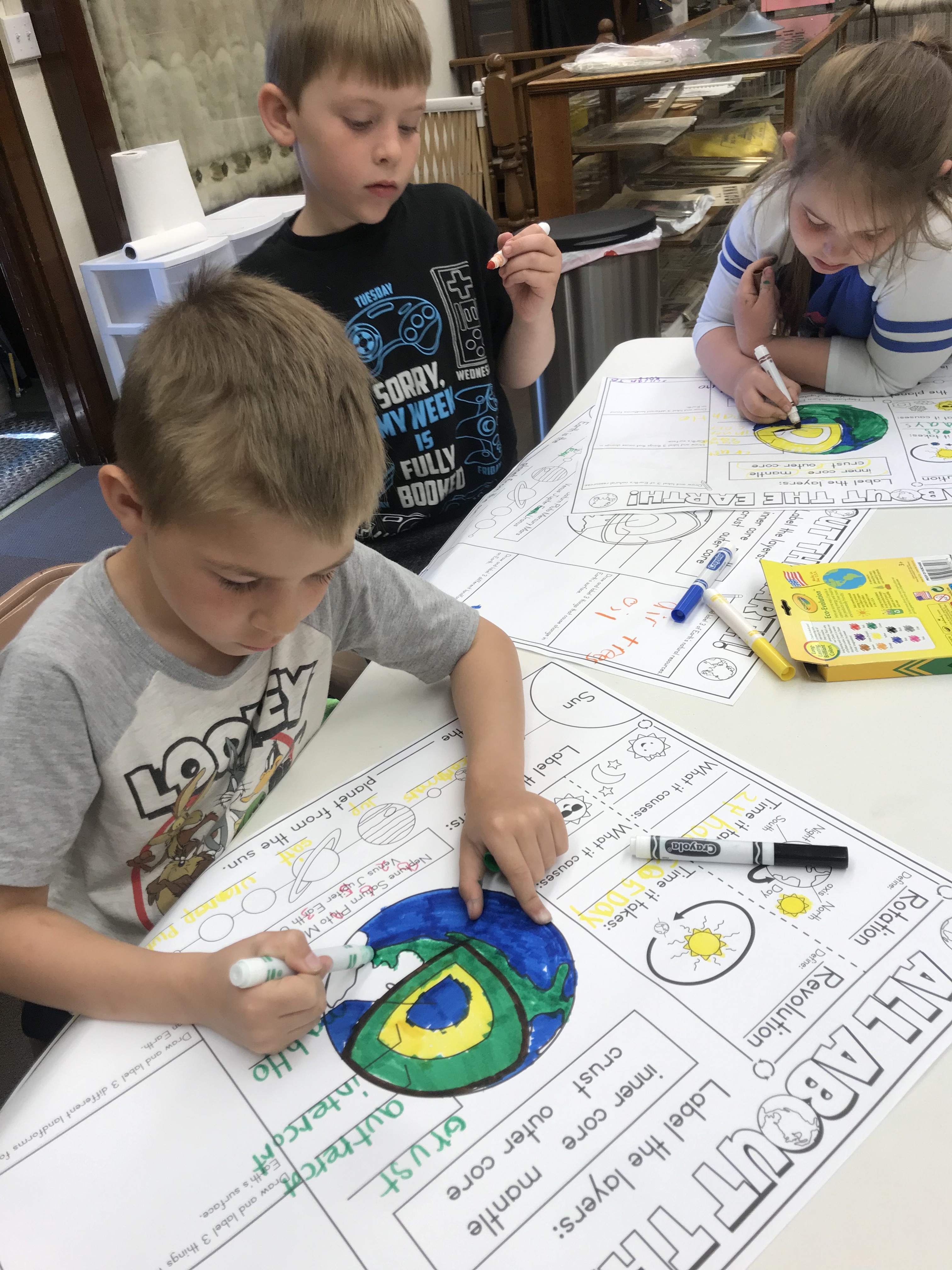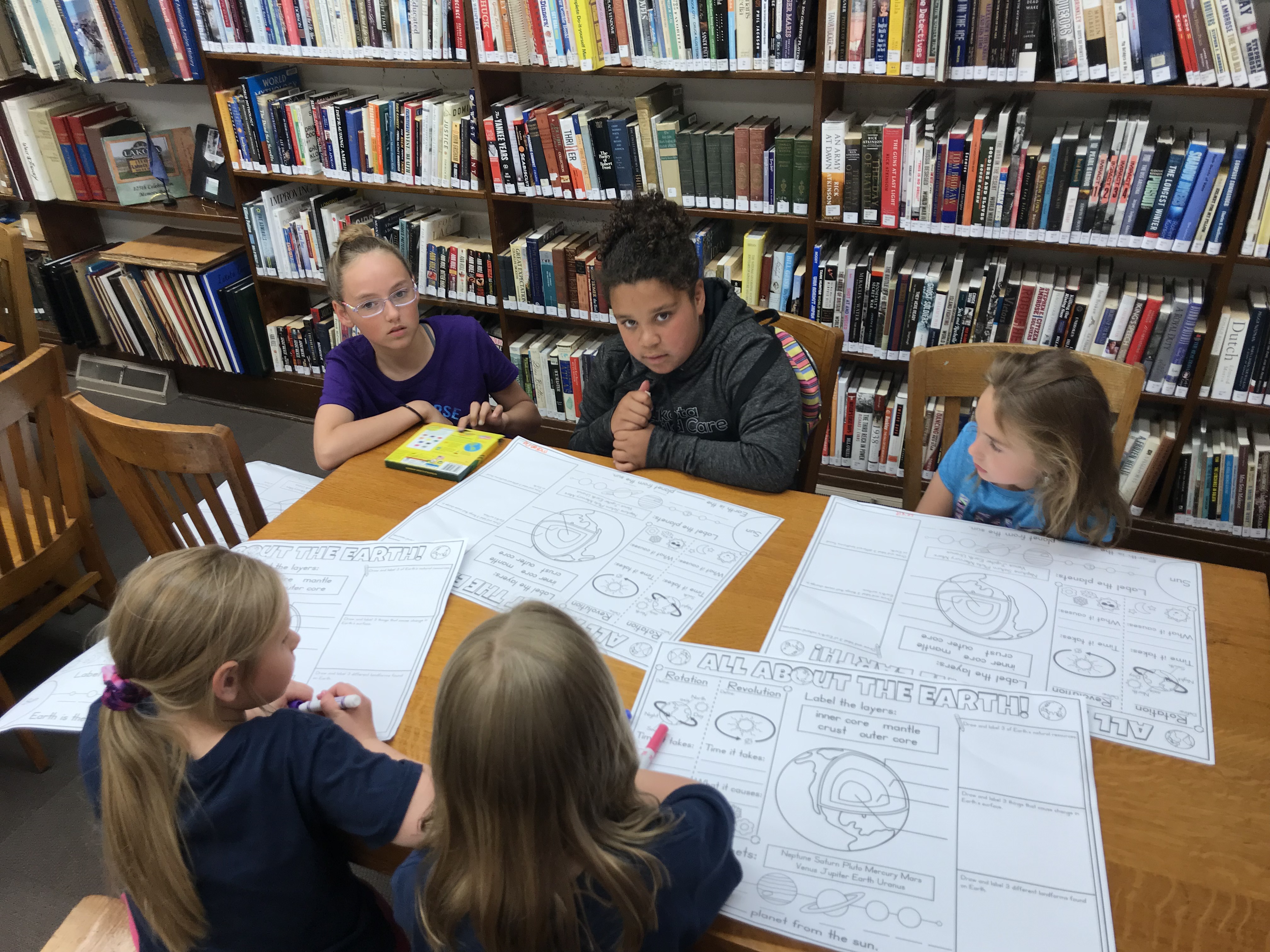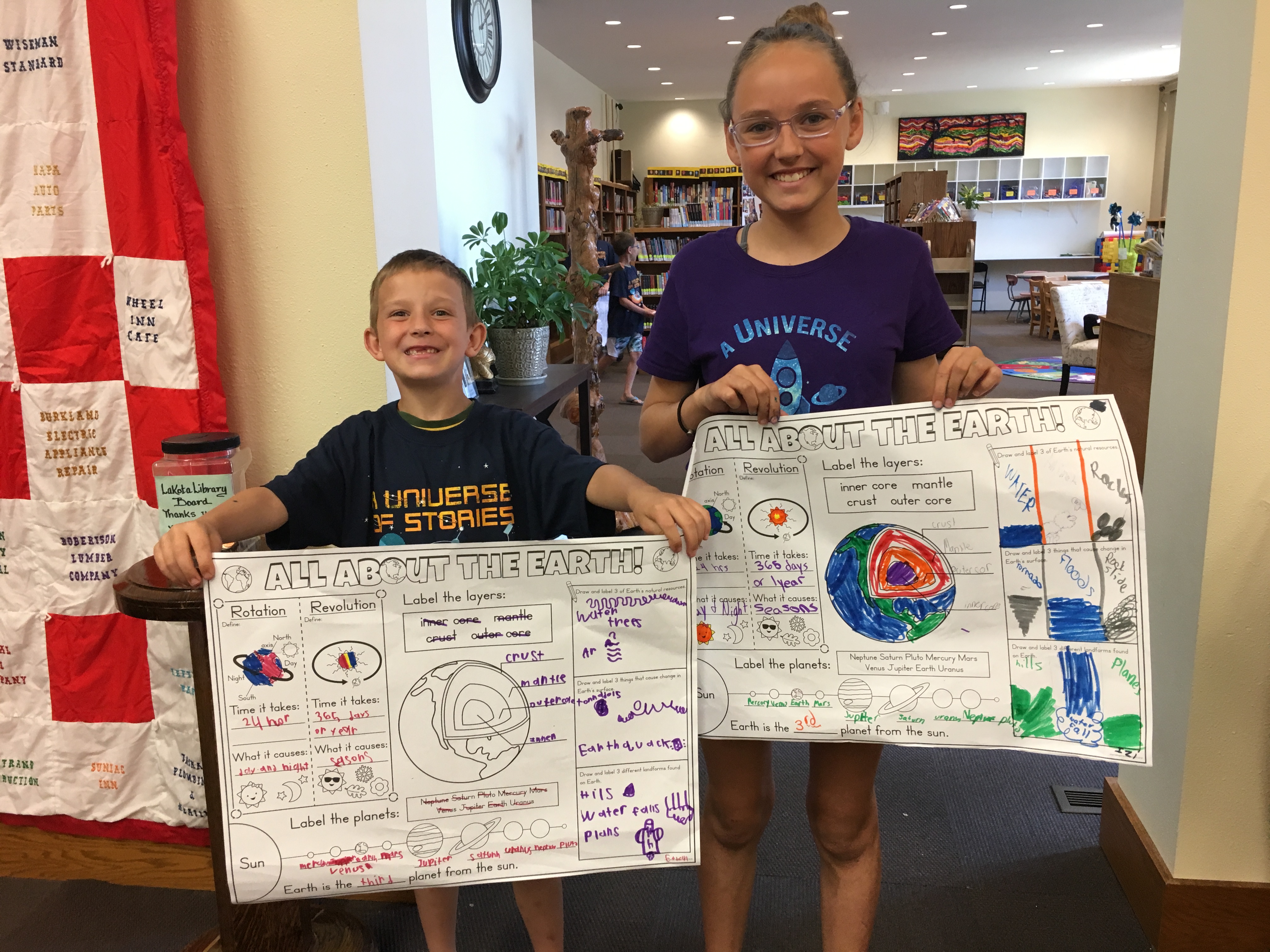 School Aged Program 6.13.19 Posted on June 18, 2019 by lakotalibrary Sticking with our space theme we reviewed the order of our planets and then learned the difference between rotation and revolution. Thank you to Mason, Graham C and Emma for being our sun, earth and moon. Share: Click to email a link to a friend (Opens in new window) Email TweetLike Loading... Related