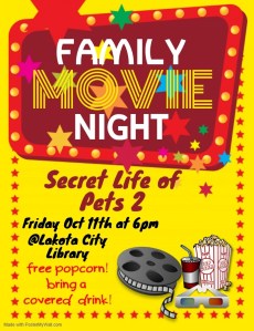 Movie Night – Secret Life of Pets 2 Posted on September 30, 2019 by lakotalibrary Share: Click to email a link to a friend (Opens in new window) Email TweetLike Loading... Related