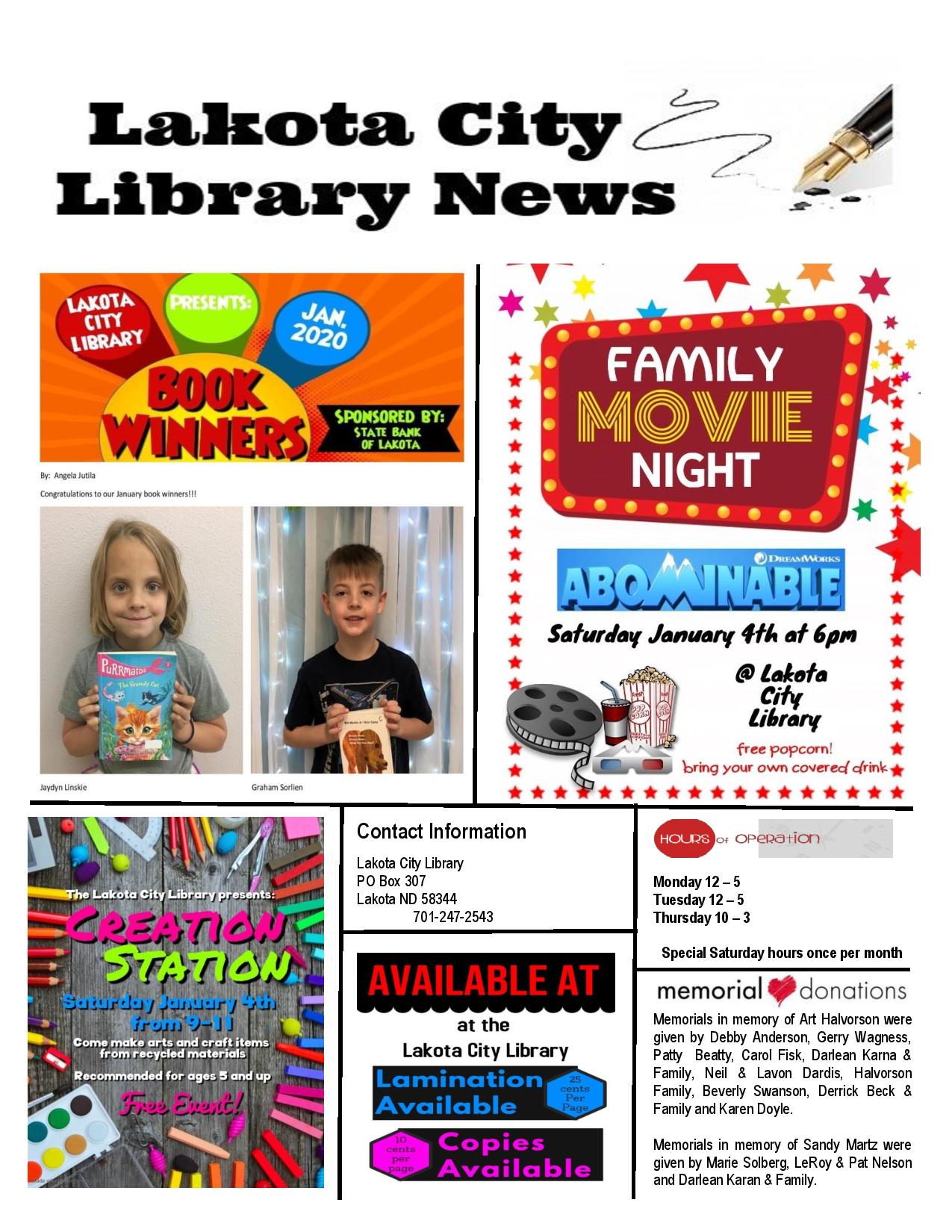 January Newsletter 2020 Posted on January 13, 2020 by lakotalibrary Share: Click to email a link to a friend (Opens in new window) Email TweetLike Loading... Related