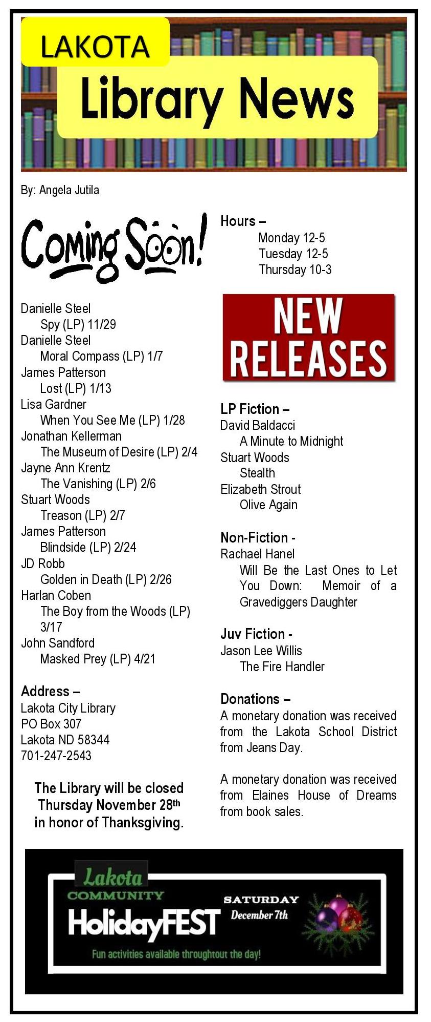 Newspaper 11.28.19 Posted on January 13, 2020 by lakotalibrary Share: Click to email a link to a friend (Opens in new window) Email TweetLike Loading... Related