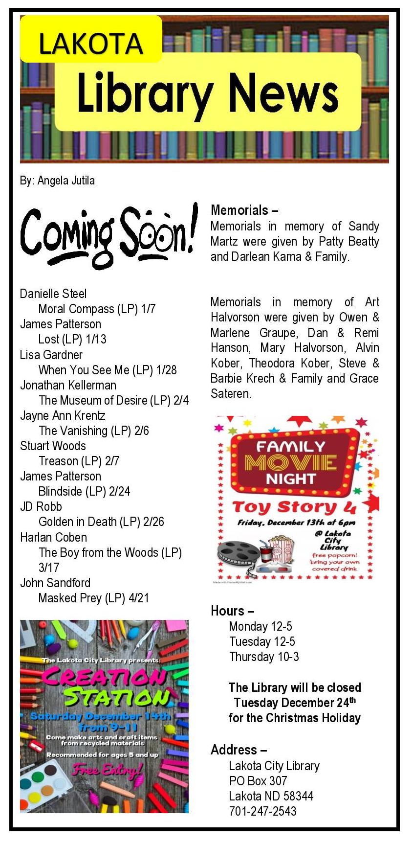 Newspaper 12.12.19 Posted on January 13, 2020 by lakotalibrary Share: Click to email a link to a friend (Opens in new window) Email TweetLike Loading... Related