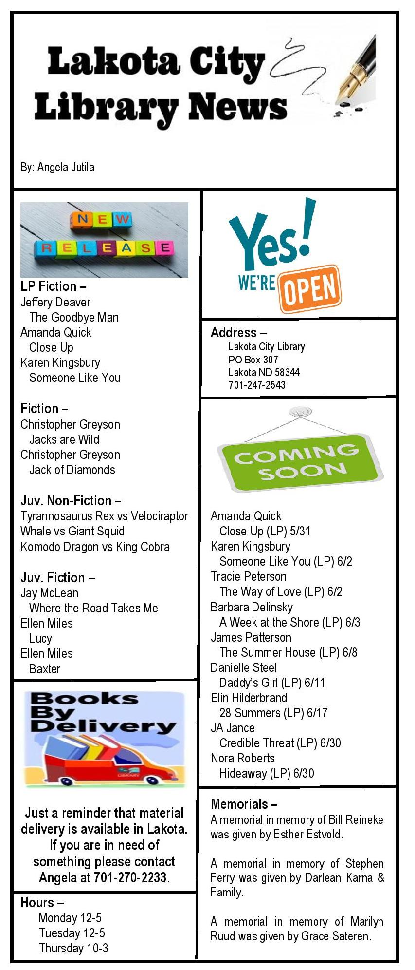 Newspaper Article 6/4/20 Posted on September 6, 2020 by lakotalibrary Share: Click to email a link to a friend (Opens in new window) Email TweetLike Loading... Related