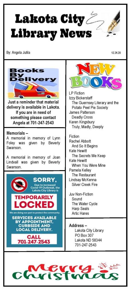 Newspaper Article 12.24.20 Posted on December 27, 2020December 27, 2020 by lakotalibrary Share: Click to email a link to a friend (Opens in new window) Email TweetLike Loading... Related