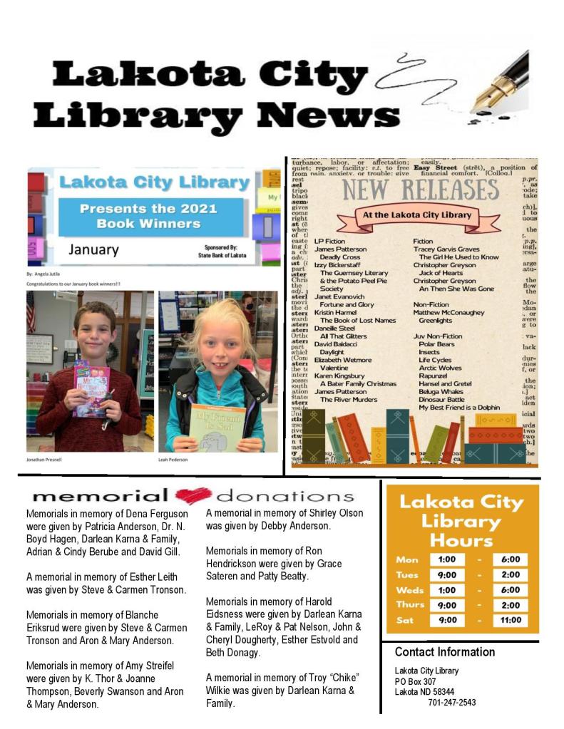 Newsletter – January 2021 Posted on January 1, 2021December 15, 2020 by lakotalibrary Share: Click to email a link to a friend (Opens in new window) Email TweetLike Loading... Related