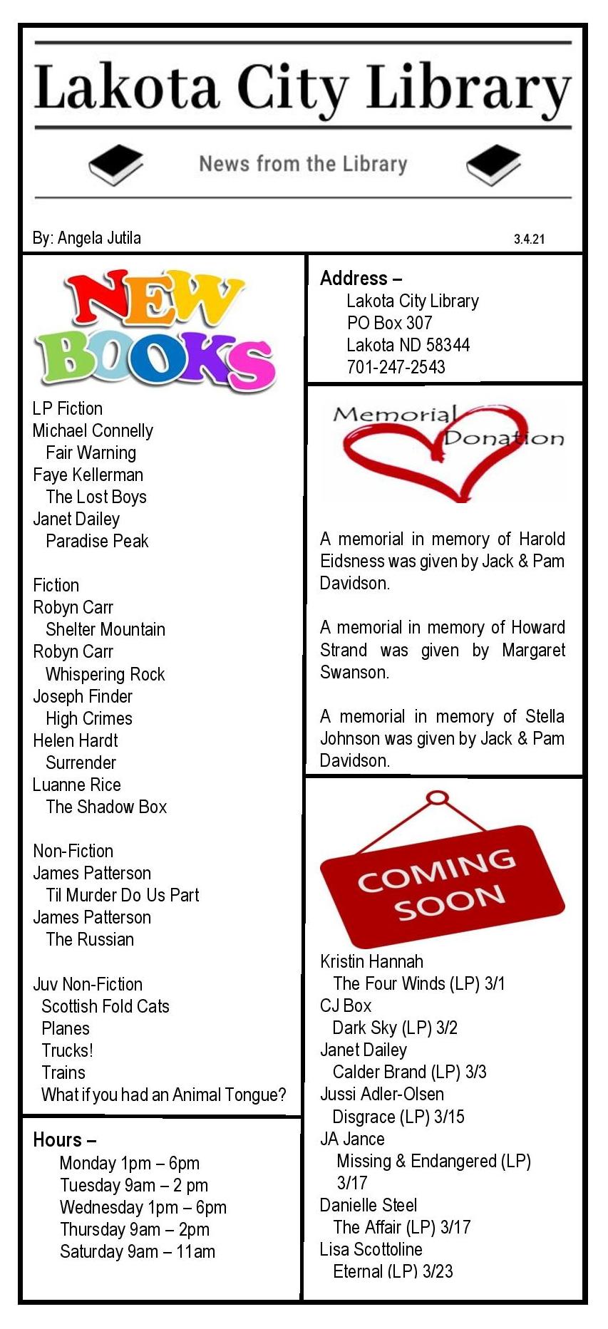 Newspaper Article 3.4.21 Posted on March 8, 2021March 7, 2021 by lakotalibrary Share: Click to email a link to a friend (Opens in new window) Email TweetLike Loading... Related