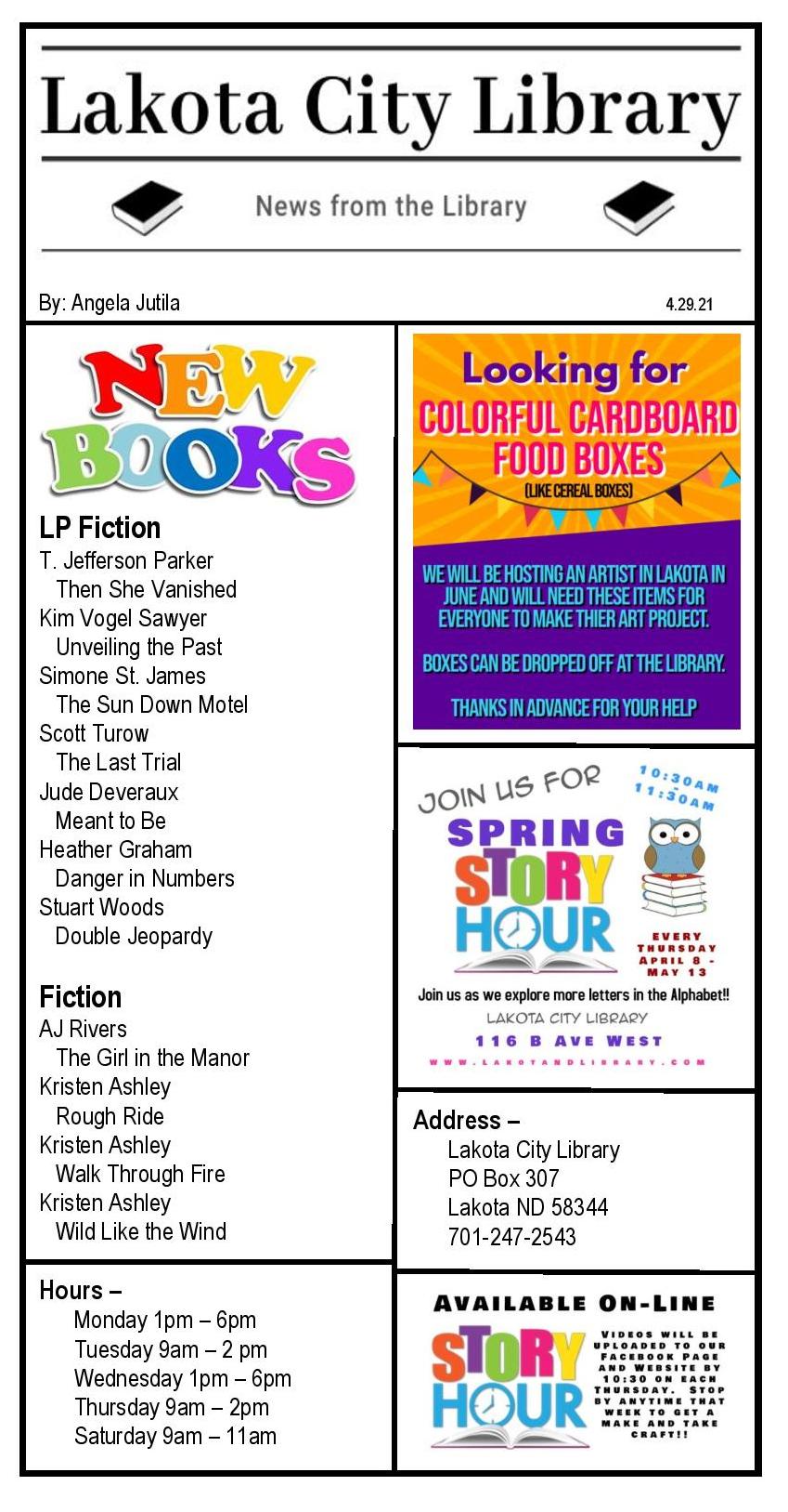 Newspaper Article 4.29.21 Posted on April 30, 2021 by lakotalibrary Share: Click to email a link to a friend (Opens in new window) Email TweetLike Loading... Related
