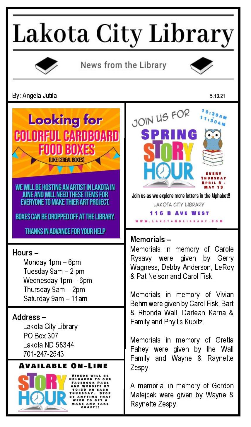 Newspaper Article 5.13.21 Posted on May 12, 2021May 10, 2021 by lakotalibrary Share: Click to email a link to a friend (Opens in new window) Email TweetLike Loading... Related