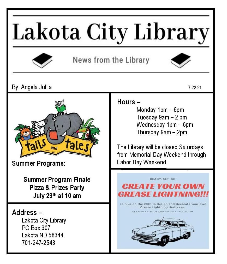 Newspaper Article 7.22.21 Posted on July 30, 2021 by lakotalibrary Share: Click to email a link to a friend (Opens in new window) Email TweetLike Loading... Related