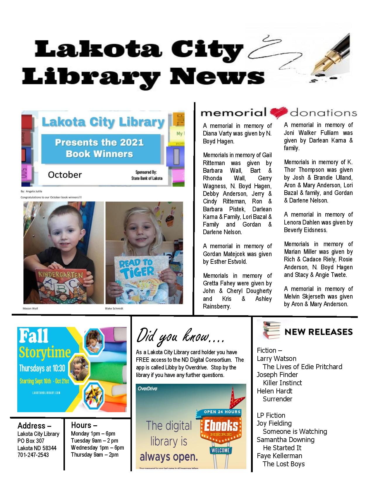 Newsletter – October 2021 Posted on October 1, 2021September 30, 2021 by lakotalibrary Share: Click to email a link to a friend (Opens in new window) Email TweetLike Loading... Related