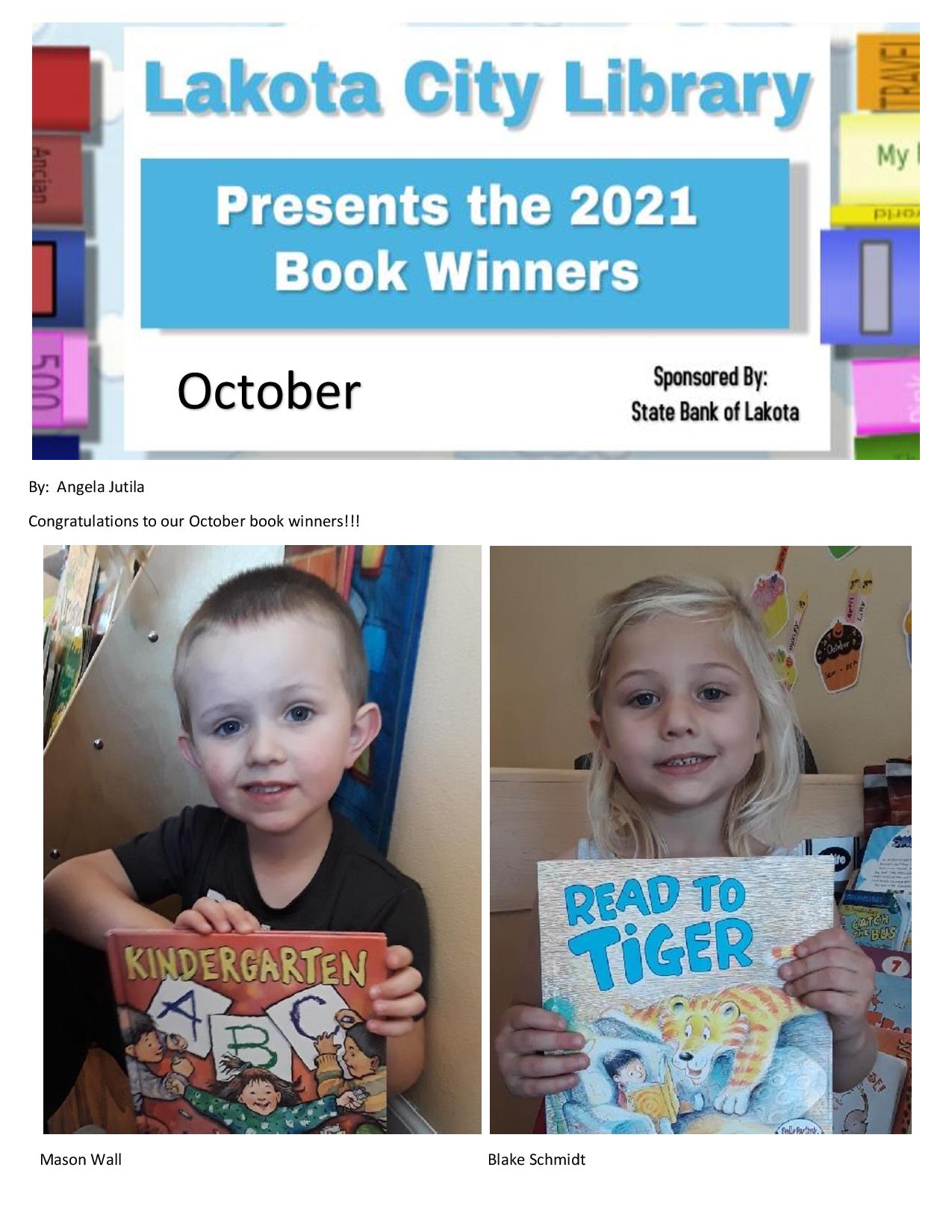 October Bookwinners Posted on October 1, 2021September 30, 2021 by lakotalibrary Share: Click to email a link to a friend (Opens in new window) Email TweetLike Loading... Related