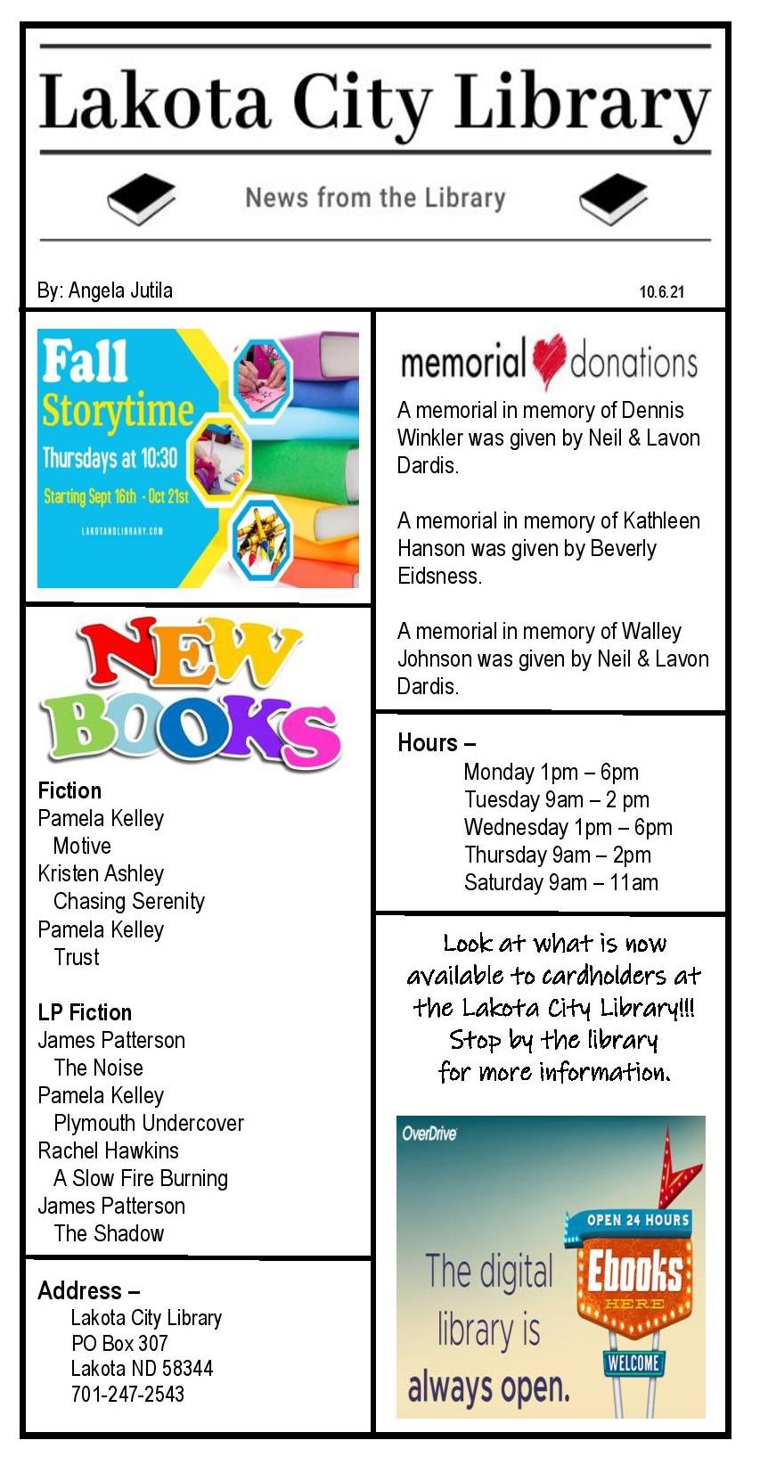 Newspaper 10.6.21 Posted on October 7, 2021October 7, 2021 by lakotalibrary Share: Click to email a link to a friend (Opens in new window) Email TweetLike Loading... Related