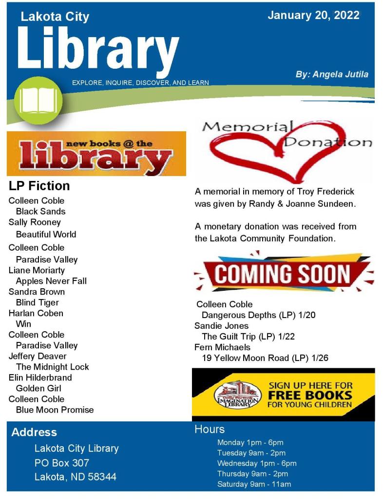 Newspaper Article 1.20.22 Posted on January 20, 2022January 17, 2022 by lakotalibrary Share: Click to email a link to a friend (Opens in new window) Email TweetLike Loading... Related