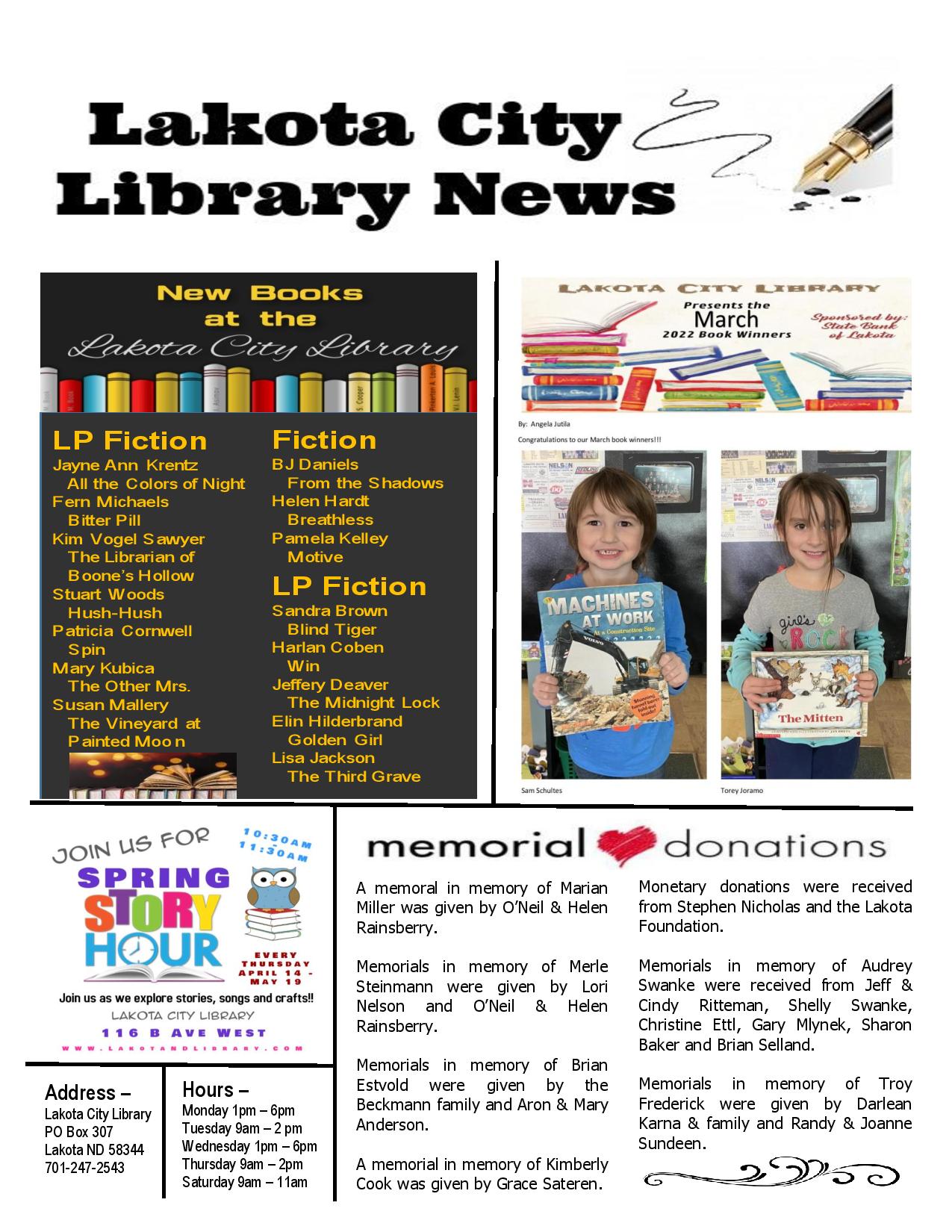 Newsletter – March 2022 Posted on March 27, 2022 by lakotalibrary Share: Click to email a link to a friend (Opens in new window) Email TweetLike Loading... Related