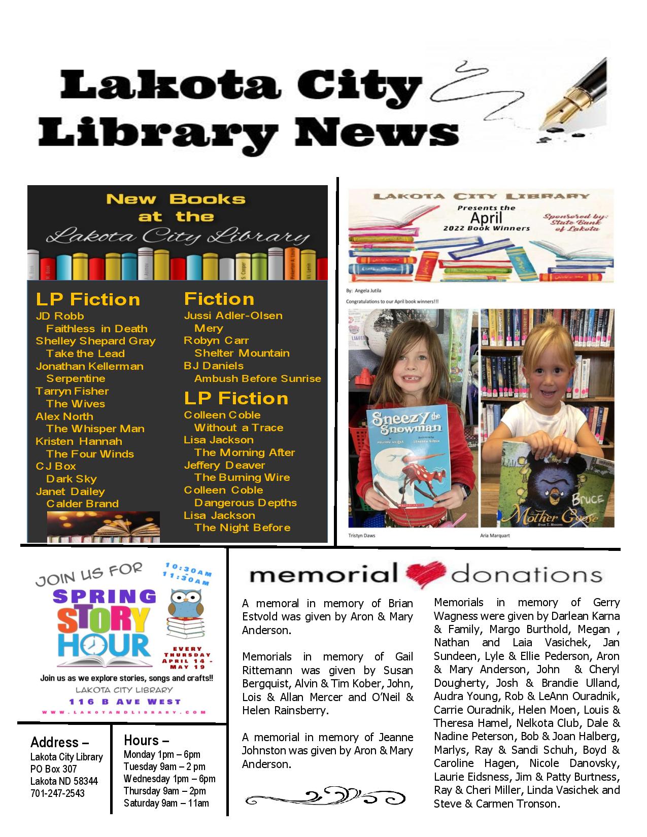 Newsletter – April 2022 Posted on April 1, 2022March 27, 2022 by lakotalibrary Share: Click to email a link to a friend (Opens in new window) Email TweetLike Loading... Related