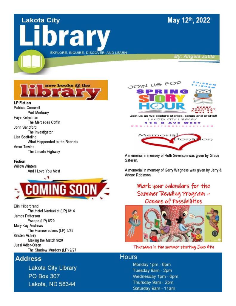 Newspaper Article 5.12.22 Posted on June 2, 2022May 31, 2022 by lakotalibrary Share: Click to email a link to a friend (Opens in new window) Email TweetLike Loading... Related