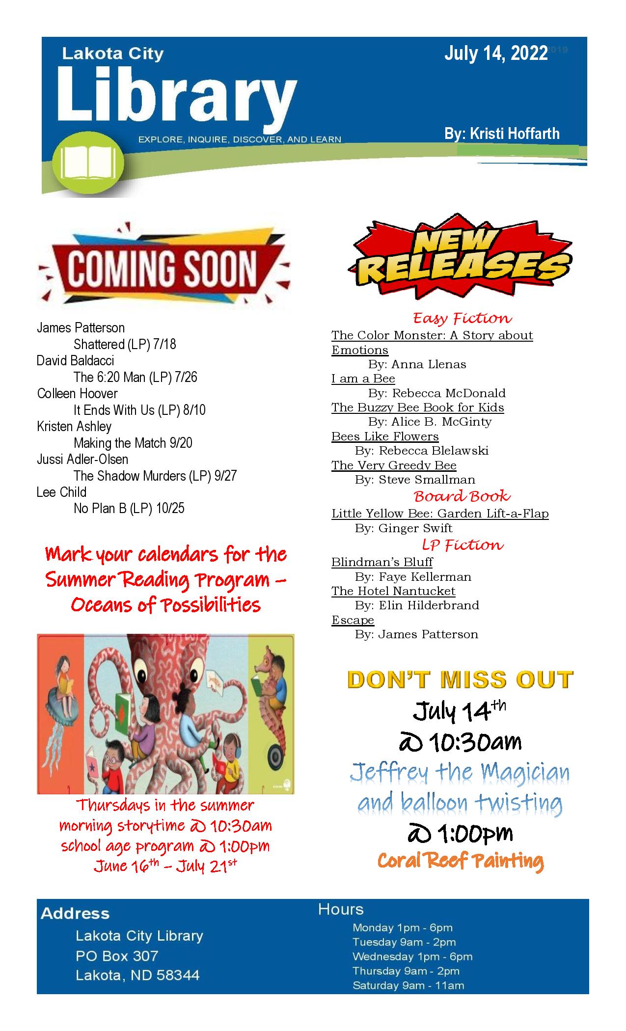 Newspaper Article 7/14/22 Posted on July 14, 2022July 12, 2022 by lakotalibrary Share: Click to email a link to a friend (Opens in new window) Email TweetLike Loading... Related