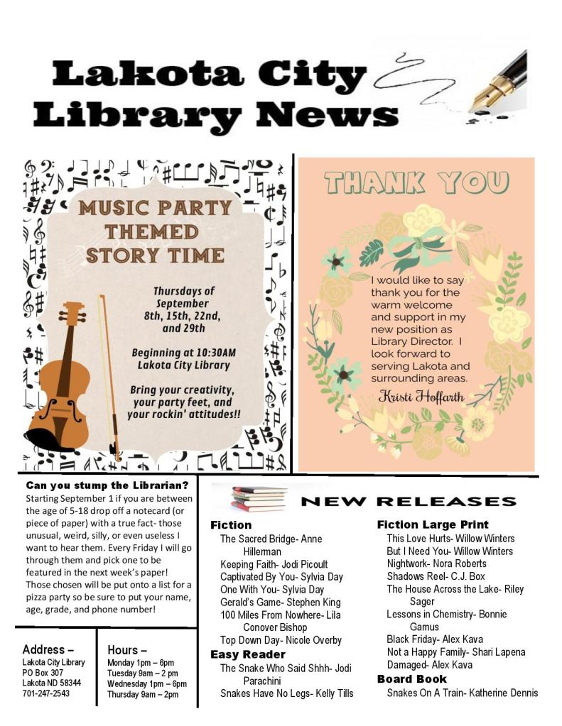 Newsletter- September 2022 Posted on September 1, 2022August 29, 2022 by lakotalibrary Share: Click to email a link to a friend (Opens in new window) Email TweetLike Loading... Related